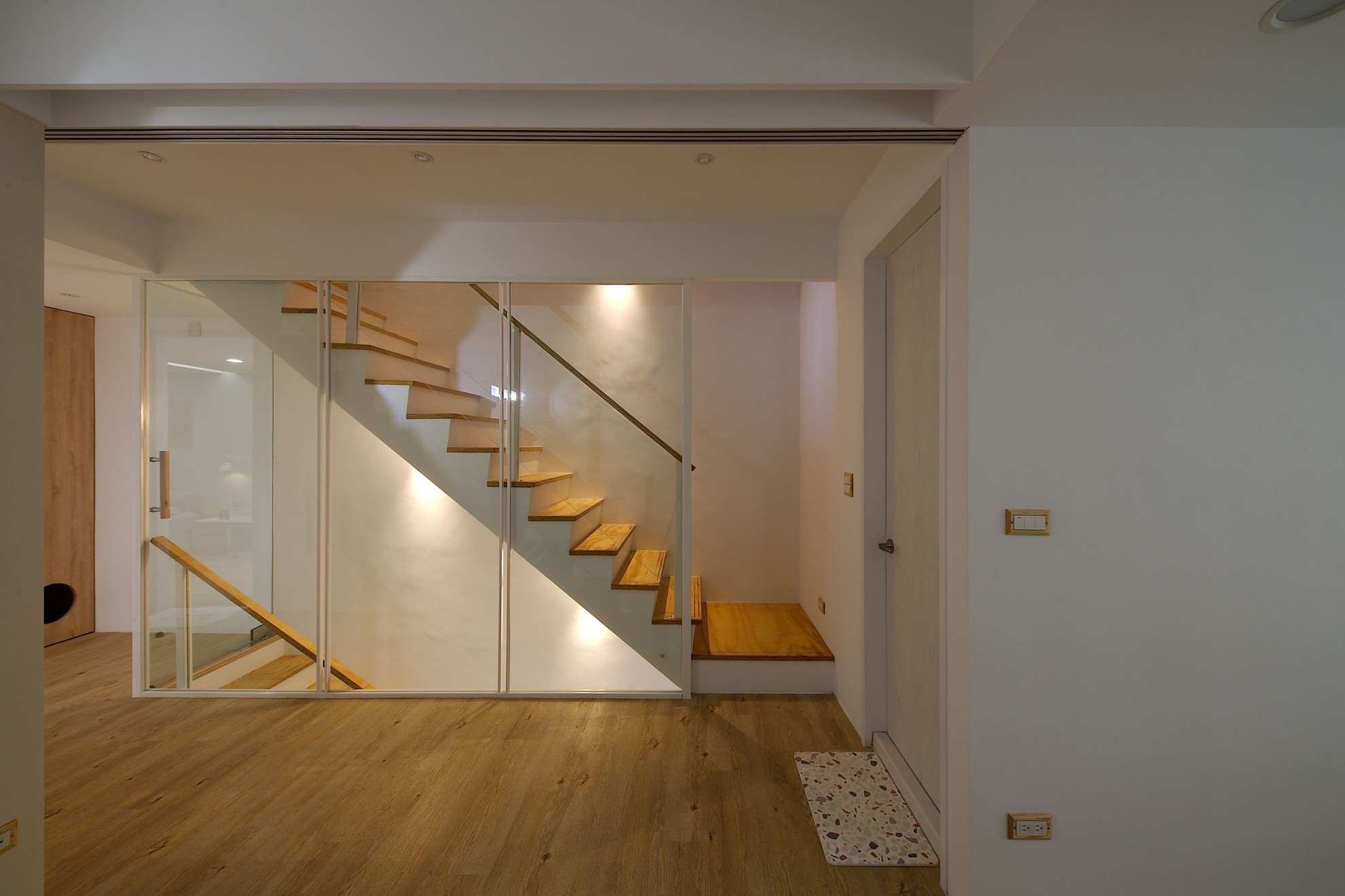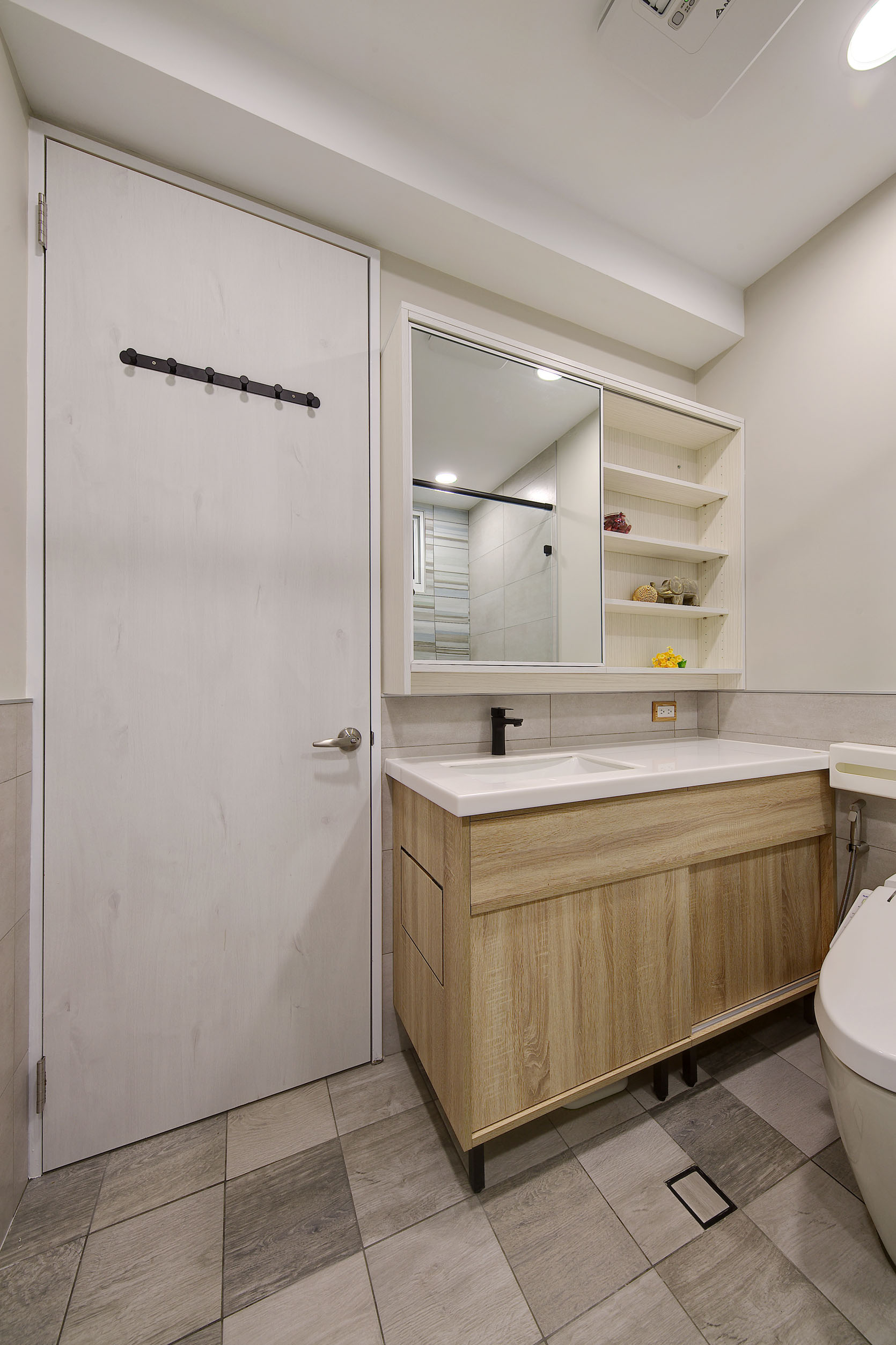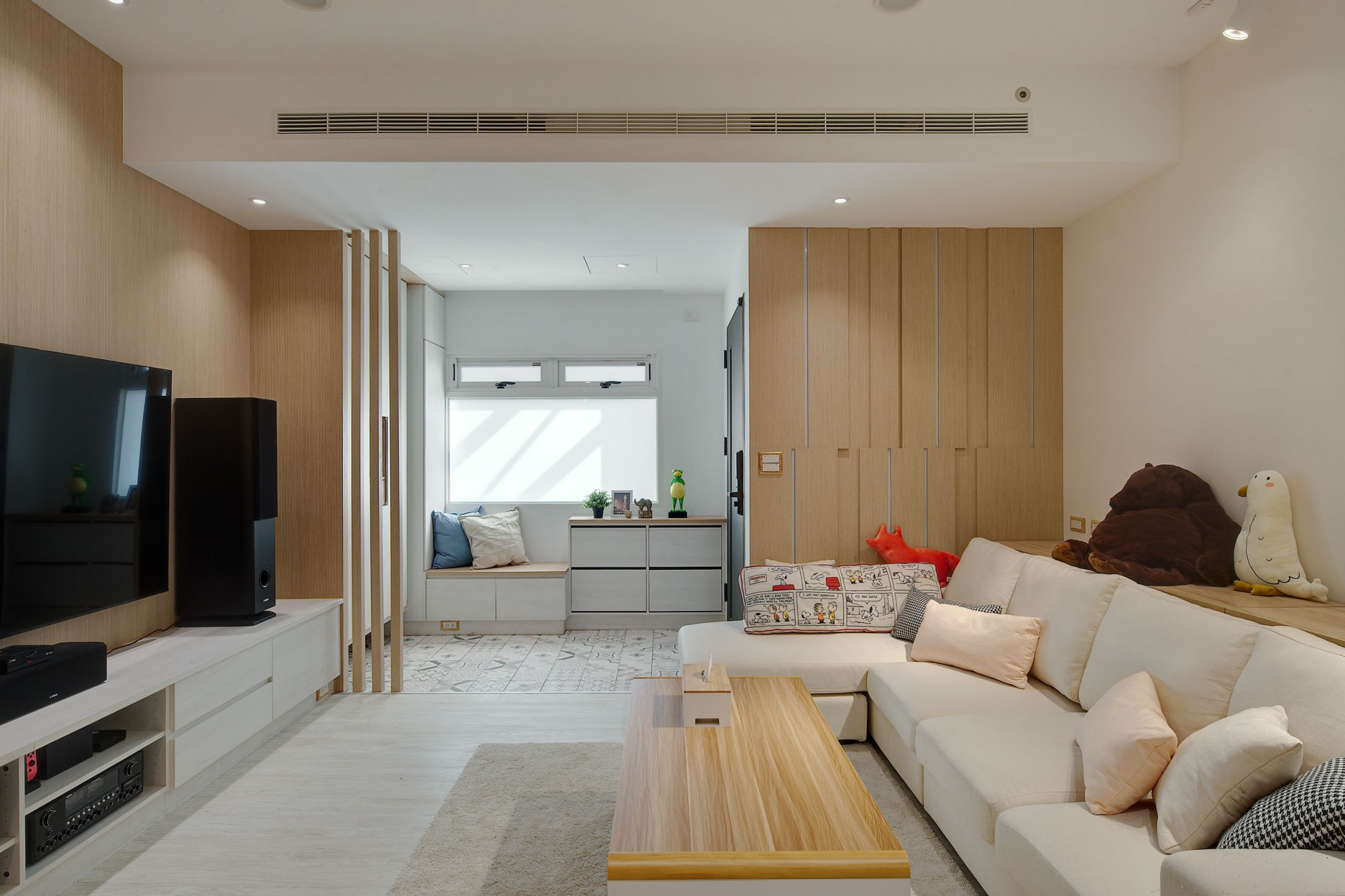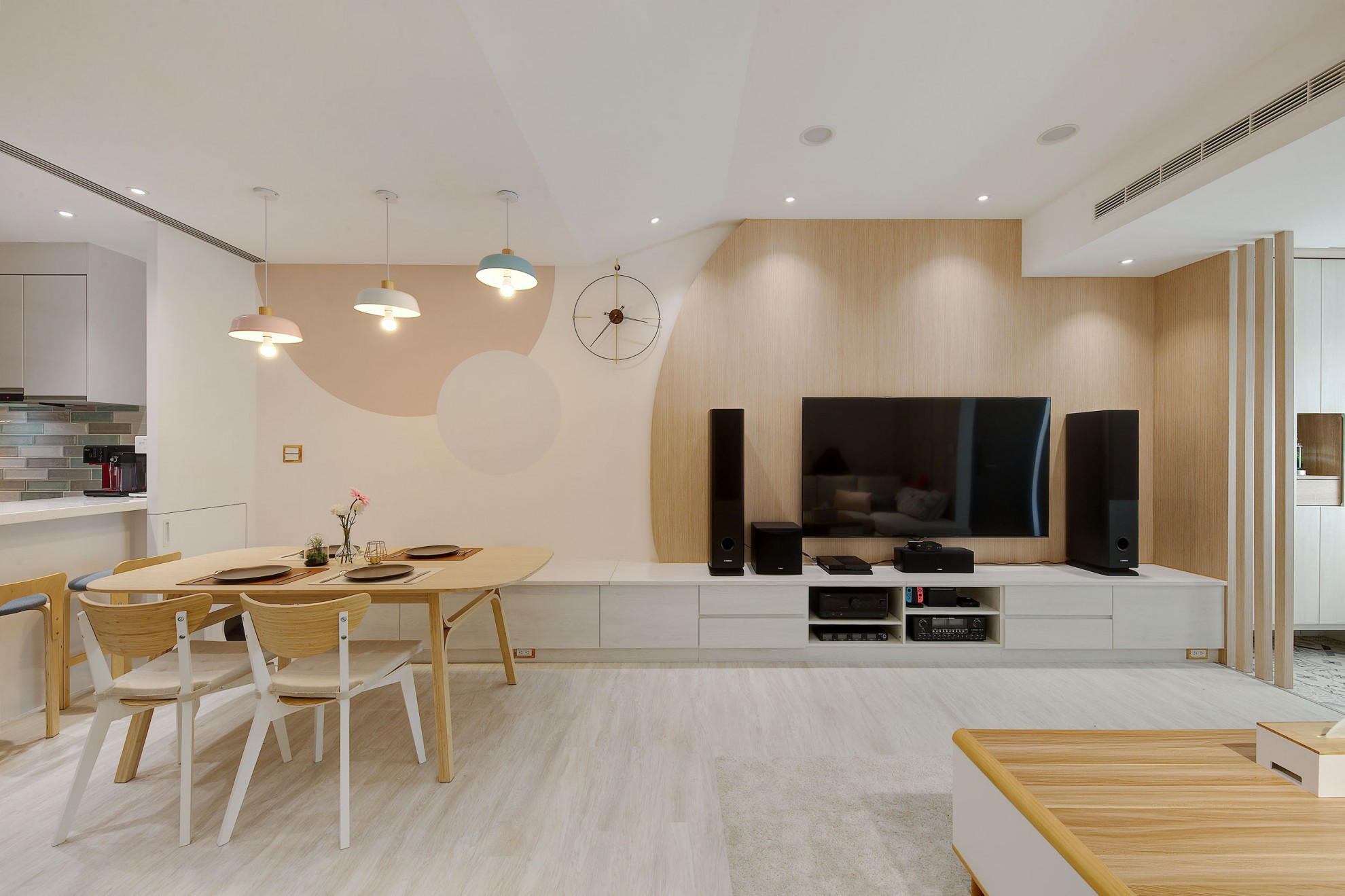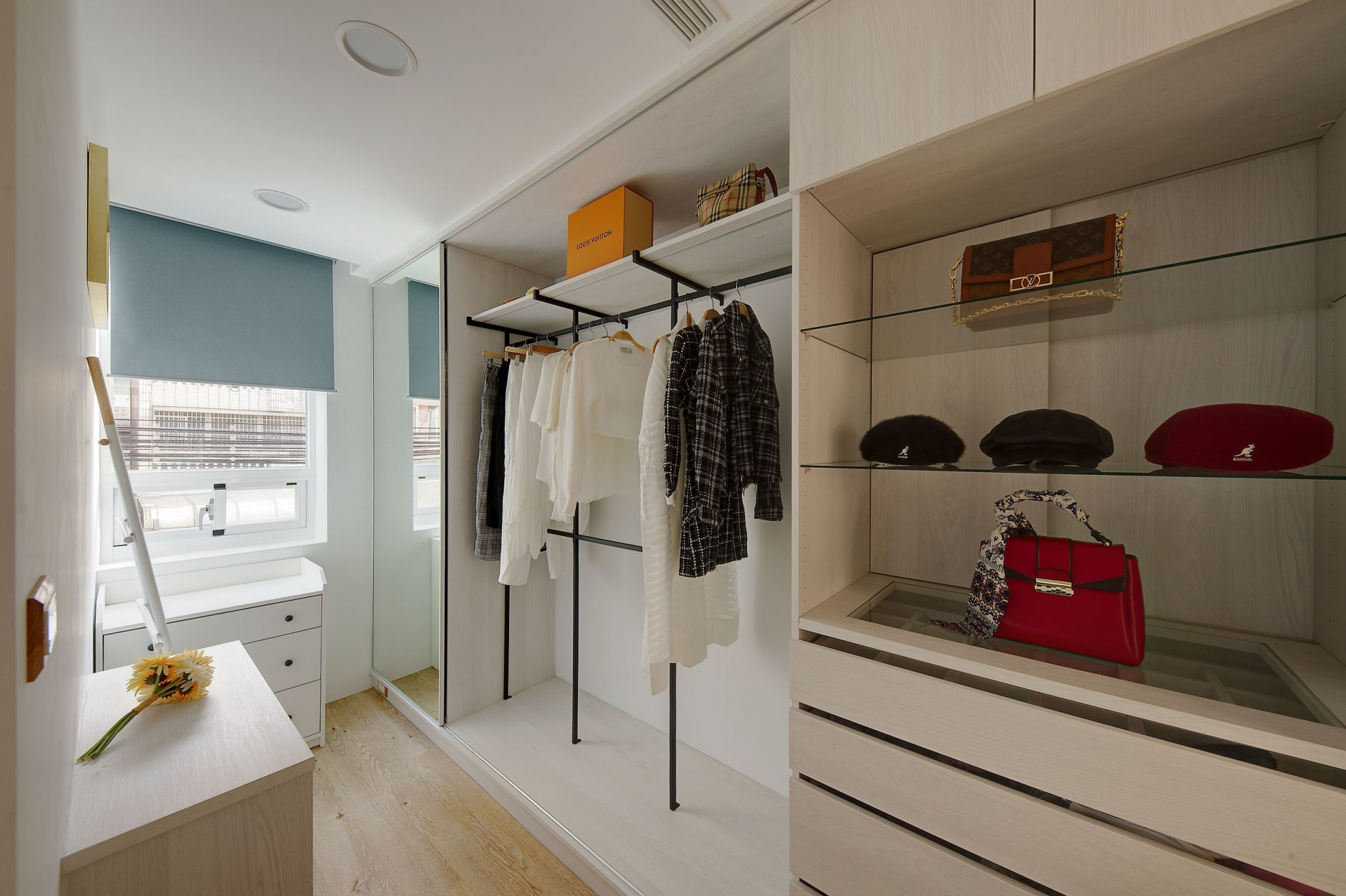 The blue vitality, the shadow of the entrance and the tiles make people relax. The TV wall in the living room and cabinet extend to the dining table and bar not only increases the seats but enlarge the space. Some cabinets are designed for cats to rest. Walk along the wooden stairs to the master bedroom on the second floor. The dark blue curtains, light blue walls, crucifix walls, wood-grain floors, and wardrobes satisfy the meaning and faith of the faint. So far, the old house has re-presented the connection between space, people, pets and belief, which also made life and soul full of vitality and radiance.