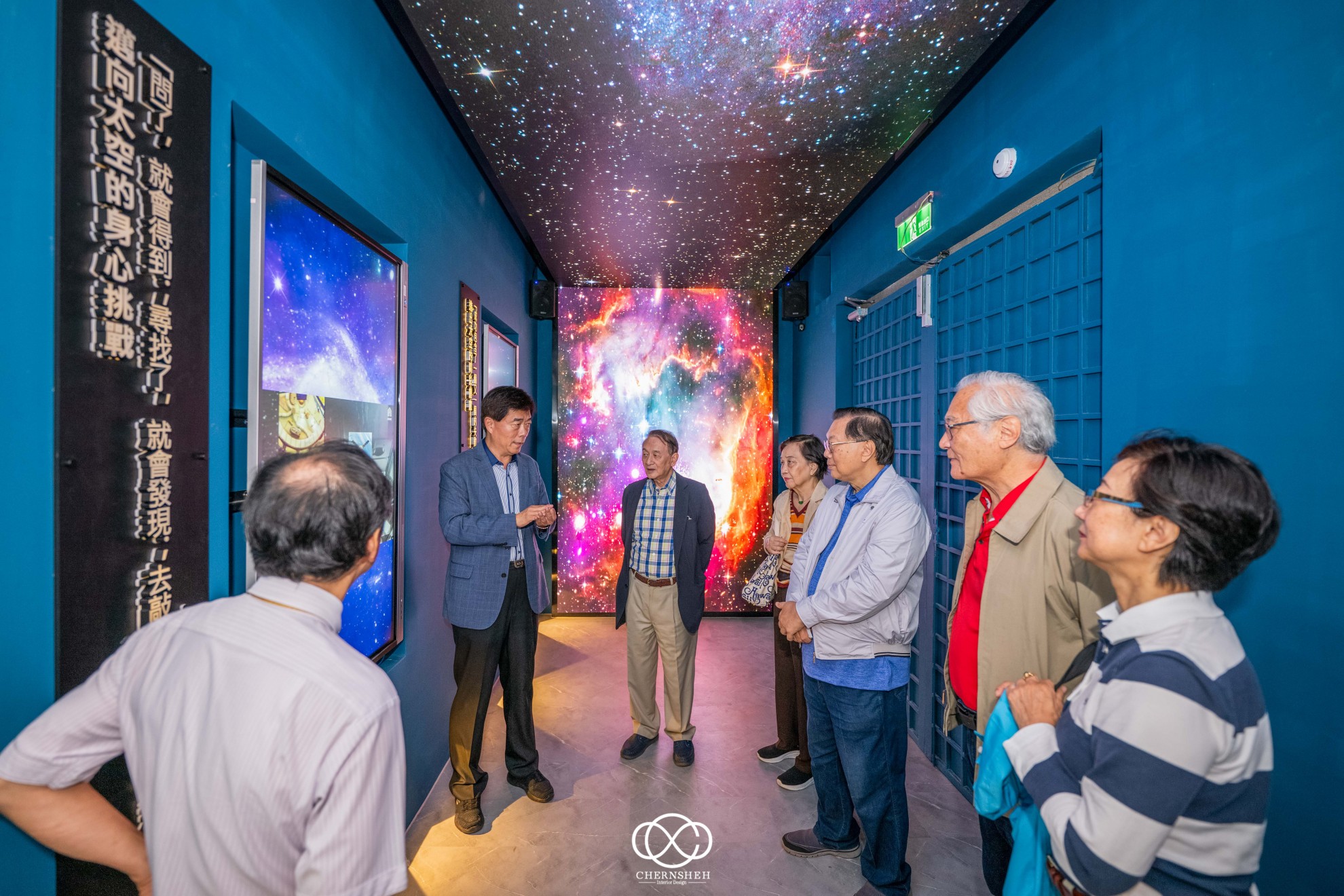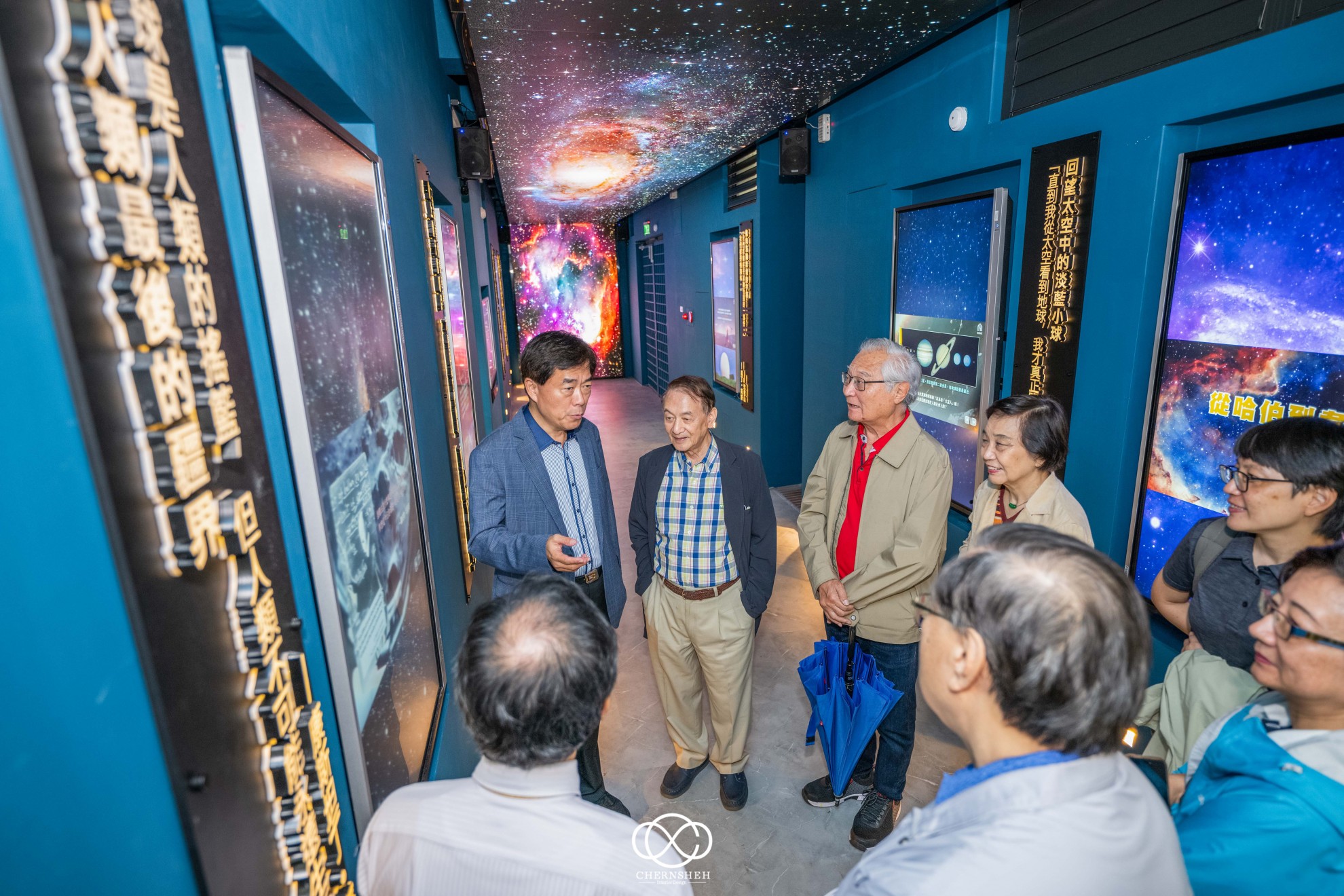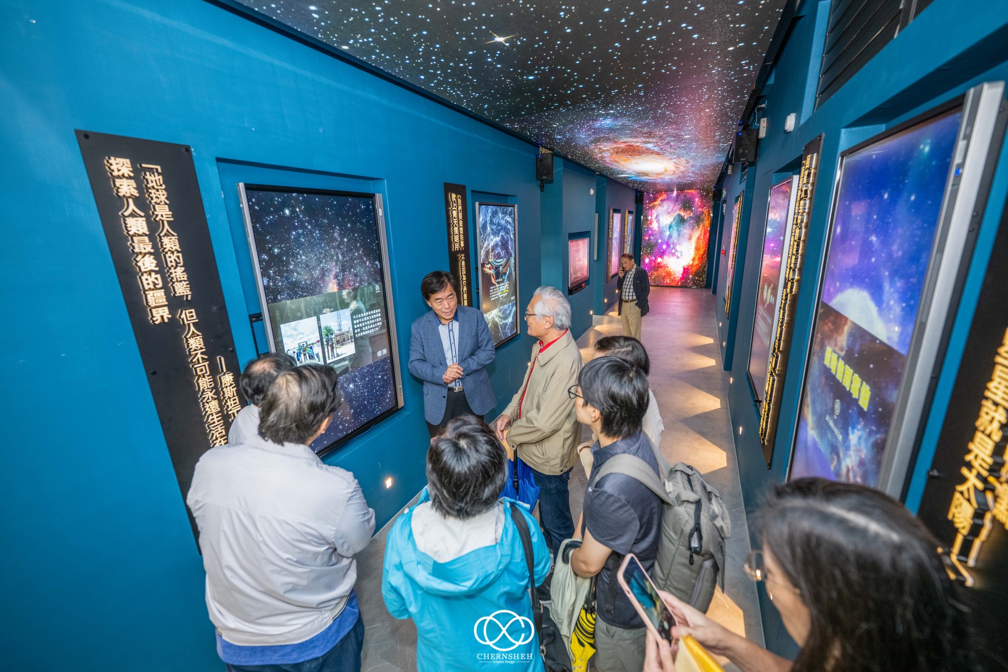 為了呈現浩瀚無限的宇宙,以沉浸式光影技術打造的視覺饗宴!超過10公尺的LED天幕呈現璀璨銀河在頭頂上方自然流動,讓同學們穿越走廊就彷彿步入宇宙之中。