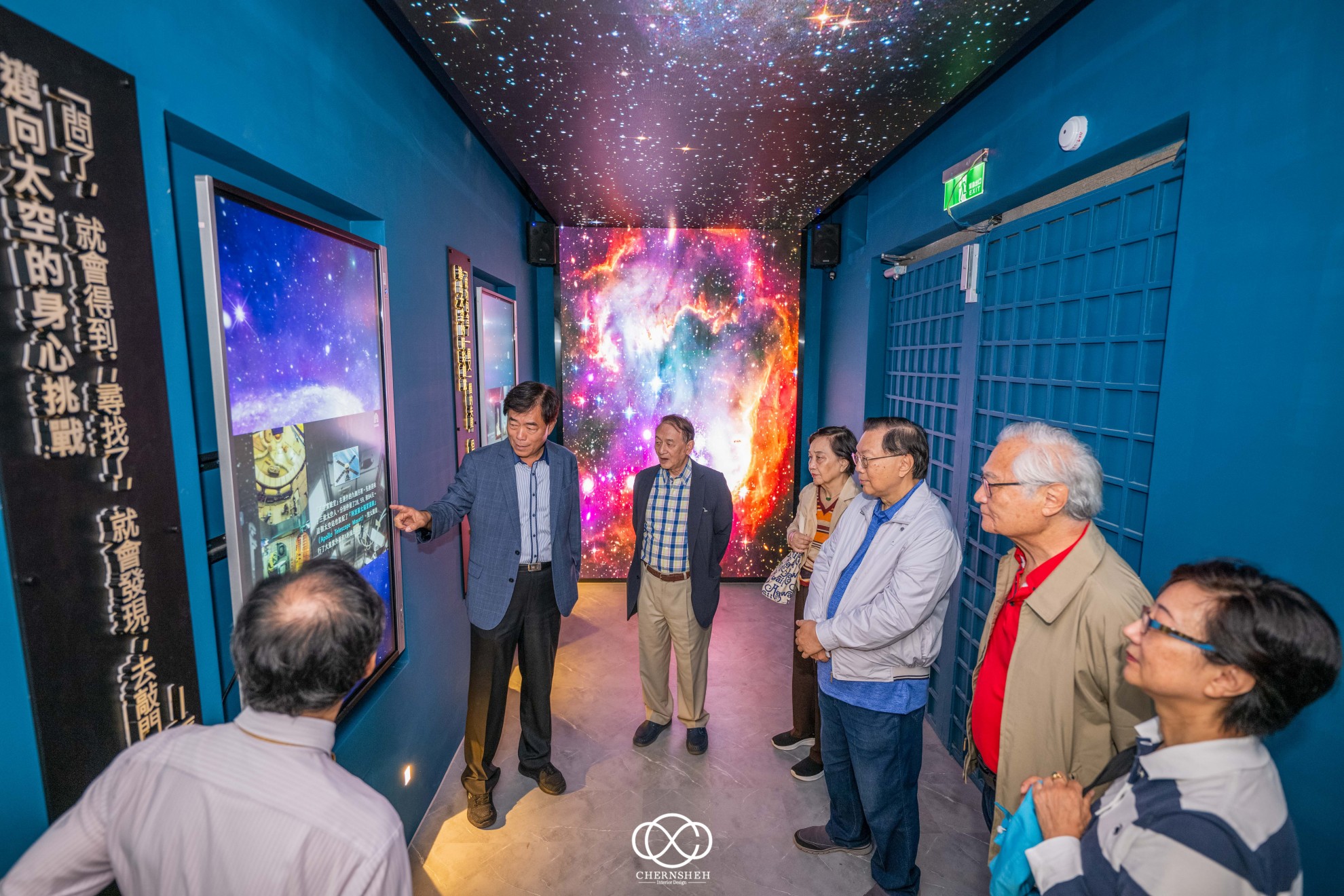 而兩側的觸控導覽螢幕提供深度的互動體驗,同學不僅可以了解太空研究相關知識,還有關於外太空知識的QA小遊戲。